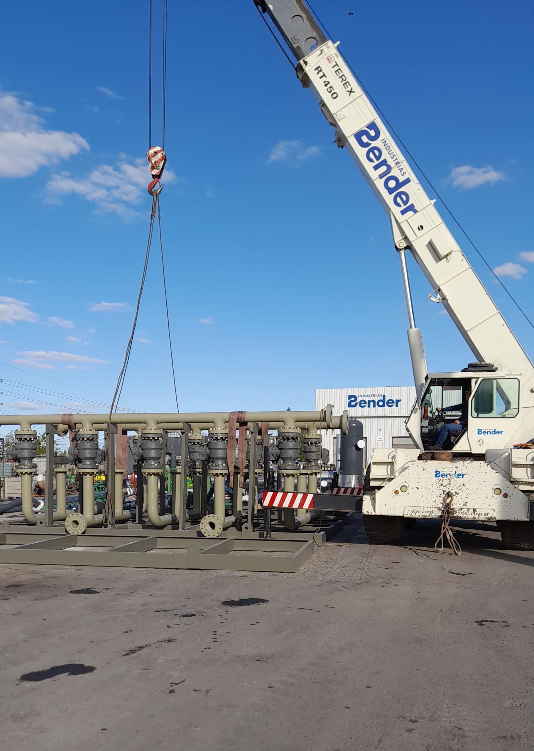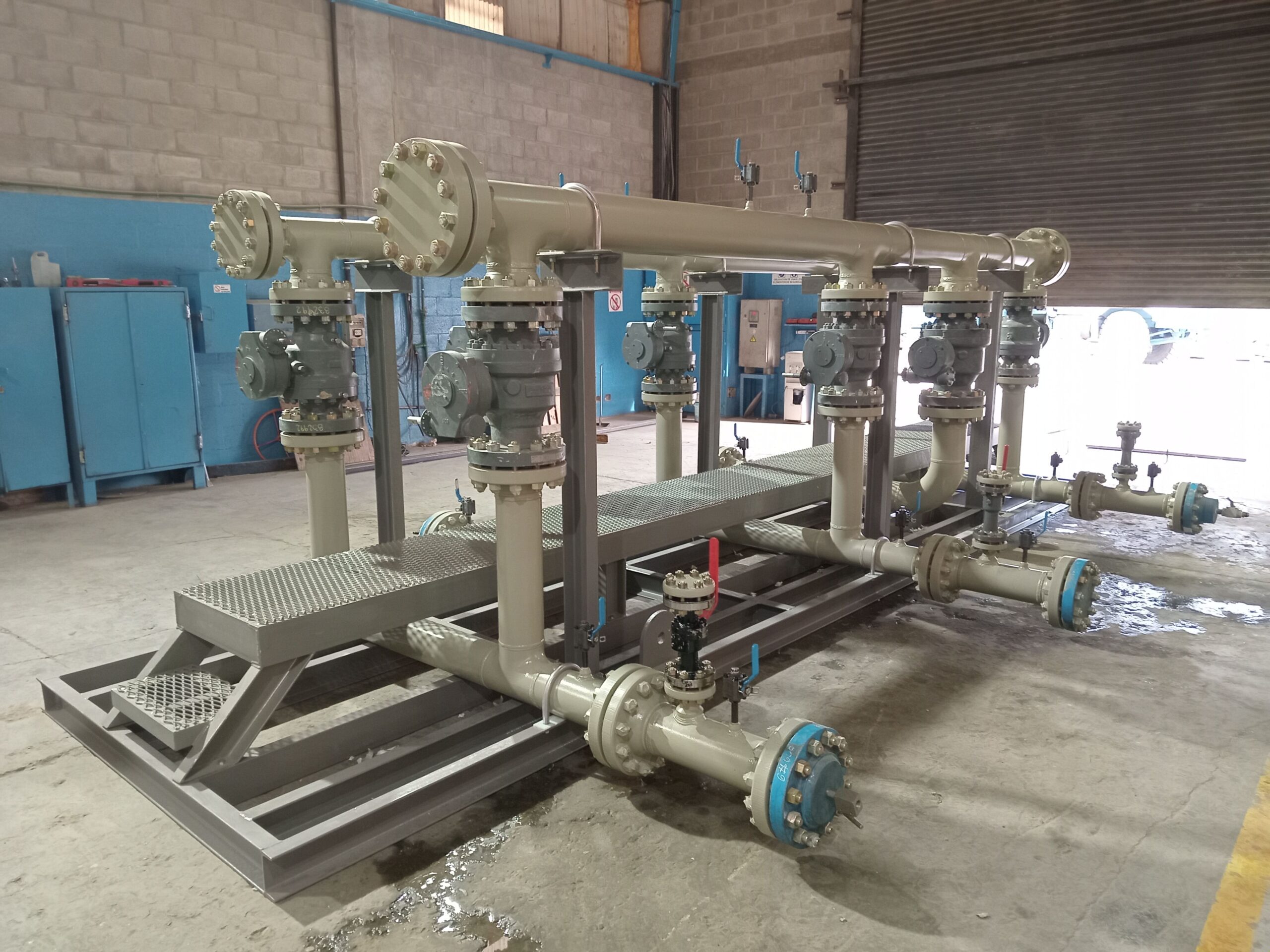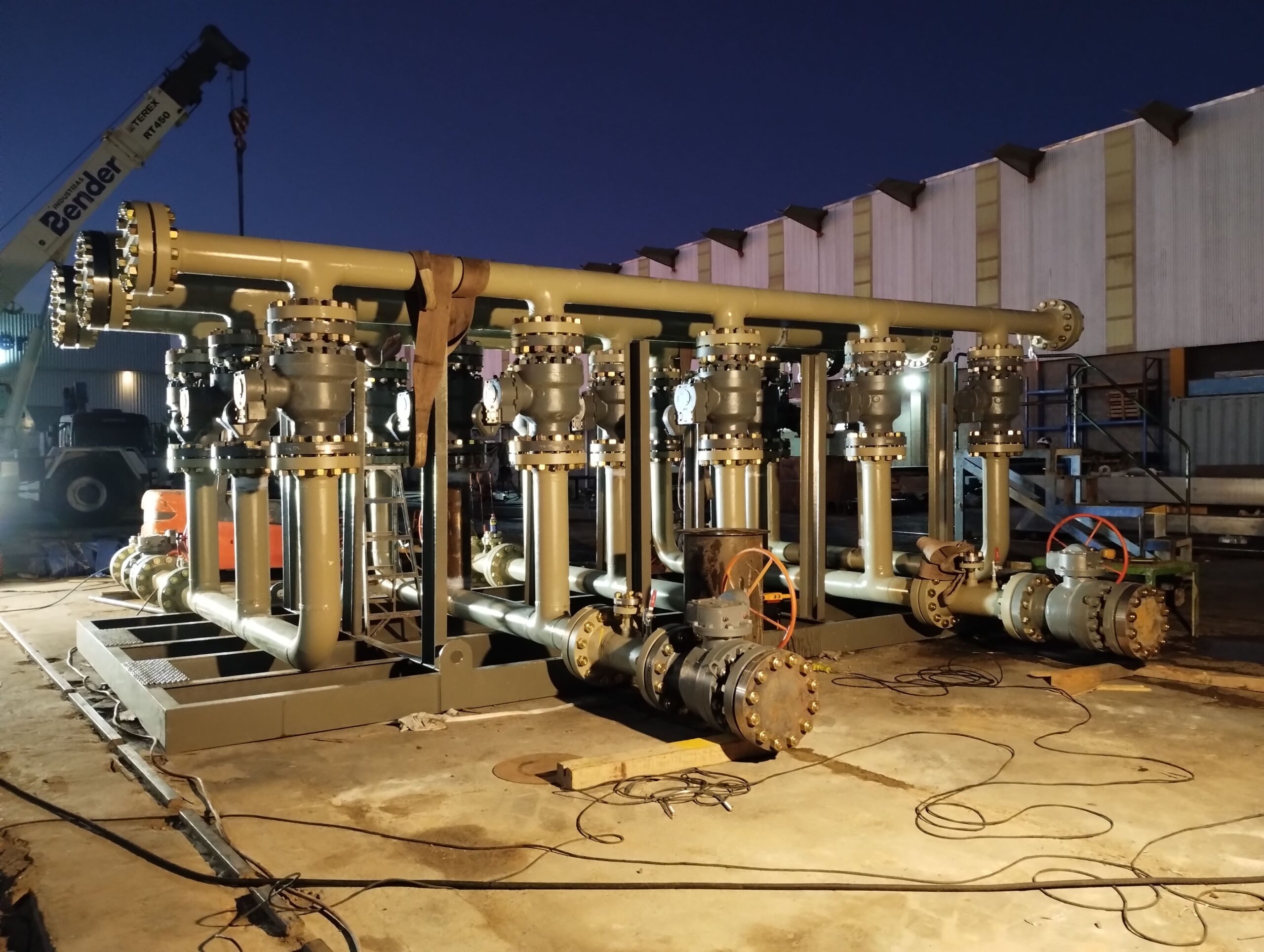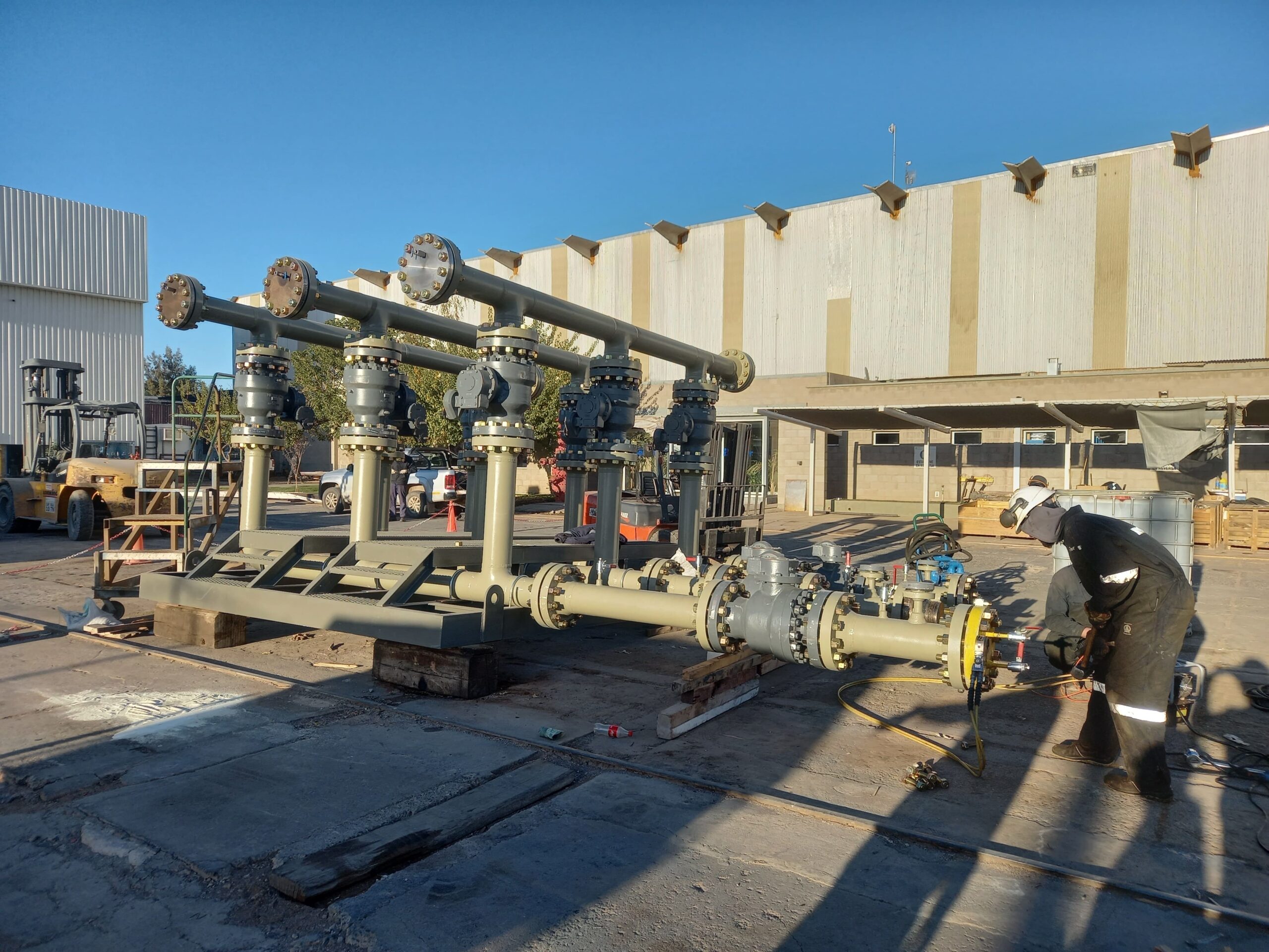 La empresa necesitaba la fabricación de colectores de gas para realizar la distribución del mismo, luego de la extracción de los pozos. El proyecto contemplaba el armado e izaje.